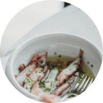 Beet (boiled or raw), dressed with lemon-olive dressing 200g + seafood 100g.
