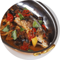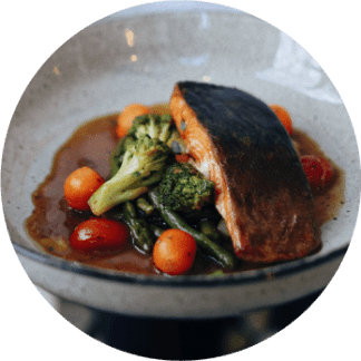Baked with greens sea fish (salmon, cod, mackerel) 150g.