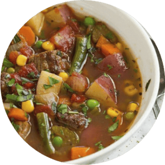 Vegetable stew with zucchini, bell peppers, beans or peas (frozen mix can be used) 200-300g.