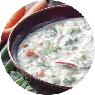 Kefir okroshka with greens, cucumber, green onions and eggs or seaweed salad + white cabbage + green peas (canned) + boiled egg, dress with vegetable oil 200-300g. Green tea.
