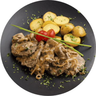 Buckwheat porridge with butter (10g) 150g. Chicken stomachs stewed with onions, carrots and sour cream or beef stroganoff 150g;