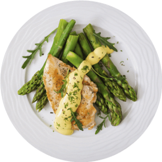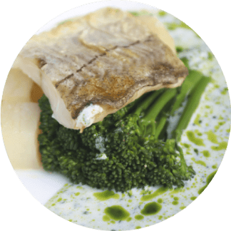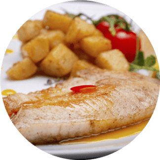 Portion of salmon or baked cod with