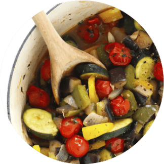 Vegetable stew of eggplant, peppers, and tomatoes;