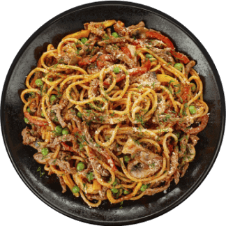 Spaghetti of durum wheat and grilled beef.