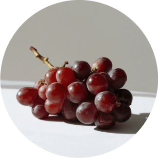 Whole fruits such as oranges, grapes, and plums.
