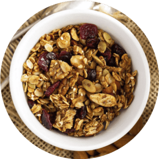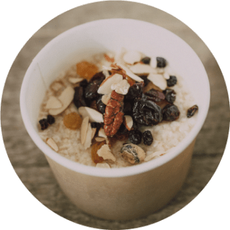 Oatmeal with nuts and fruit.