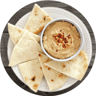Whole-grain pita and 2 spoonfuls of hummus.