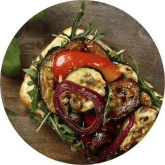 Grilled vegetables: tomato, zucchini, peppers, eggplant;